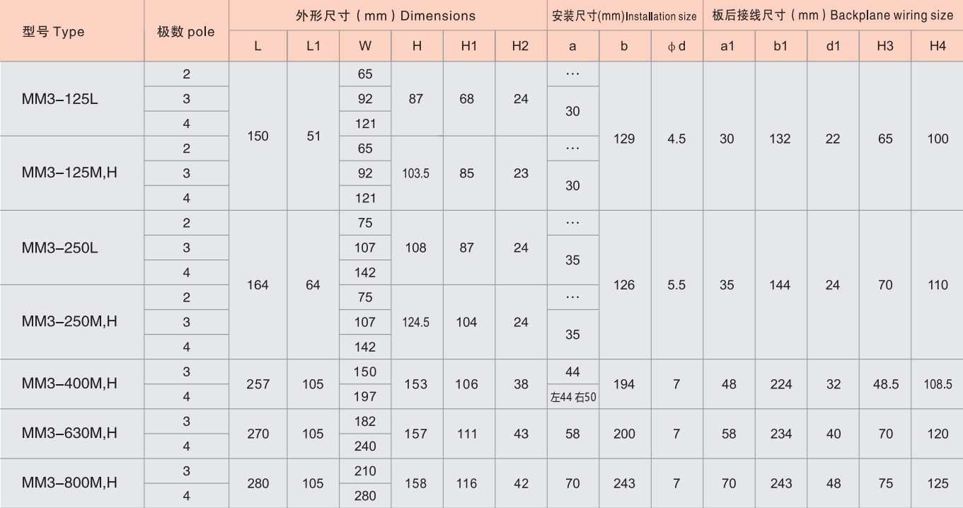 The rated insulation voltage of this circuit breaker is up to 800V, suitable for distribution network circuits with AC 50Hz, rated working voltage up to 400V, and rated working current up to 1600A. It is used to distribute electrical energy and protect lines and power equipment from losses caused by overload, short circuit, undervoltage and other faults. At the same time, it can also serve as infrequent starting and overload, short circuit, and undervoltage protection for electric motors. This circuit breaker has the characteristics of small size, high breaking height, and short arcing, making it an ideal product for users. Circuit breakers can be installed vertically or horizontally. This product complies with standards such as IEC60947-2 and GB/T14048.2.